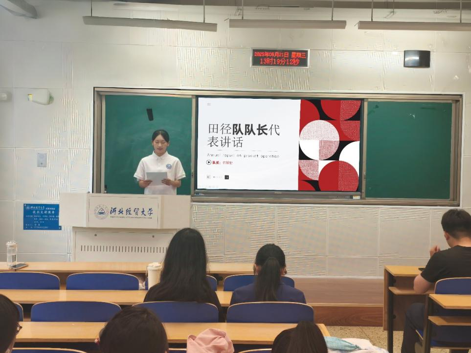 大会最后,路荣做总结讲话。她对第一届田径队提出殷切期望,希望队员们在未来的日子里,发扬不怕吃苦、奋勇争先的精神,在各类赛事中取得优异成绩,为学院争光添彩!