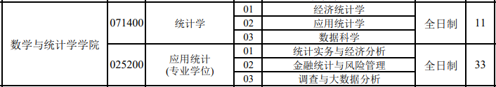 2022年全日制拟招生44人,其中应用统计专业硕士33人,统计学专业11人(本文拟招人数包含拟接收推荐免试生人数,仅供参考,最终招生计划以国家下达的指标为准。)