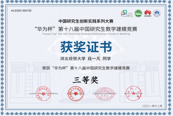 “华为杯”第十八届中国研究生数学建模竞赛评选结果揭晓,我院研究生团队喜获全国一等奖1项(获奖比例为1.164%),二等奖1项(获奖比例为12.293%),三等奖2项(获奖比例为19.89%)。