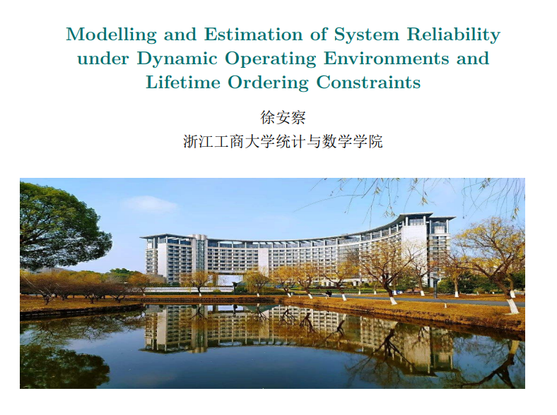10月31日下午,数学与统计学学院邀请浙江工商大学徐安察教授在线作题为“Modelling and Estimation of System Reliabilityunder Dynamic Operating Environments andLifetime Ordering Constraints”的学术报告。报告由数学与统计学学院副院长闫亮主持,30余名师生参加。