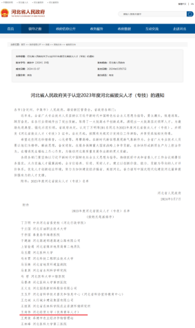 近日,根据河北省人民政府《关于认定2023年度河北省拔尖人才(专技)的通知》(冀政字[2024]29号),太阳成集团tyc33455ccww教师王岗伟博士被认定为2023年度河北省拔尖人才(专技)优秀青年人才。本次选拔工作共认定201名同志为河北省拔尖人才(专技),其中优秀青年人才50人。