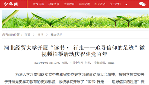 【少年网】tyc33455cc太阳成集团开展“读书· 行走—追寻信仰的足迹”微视频拍摄活动庆祝建党百年