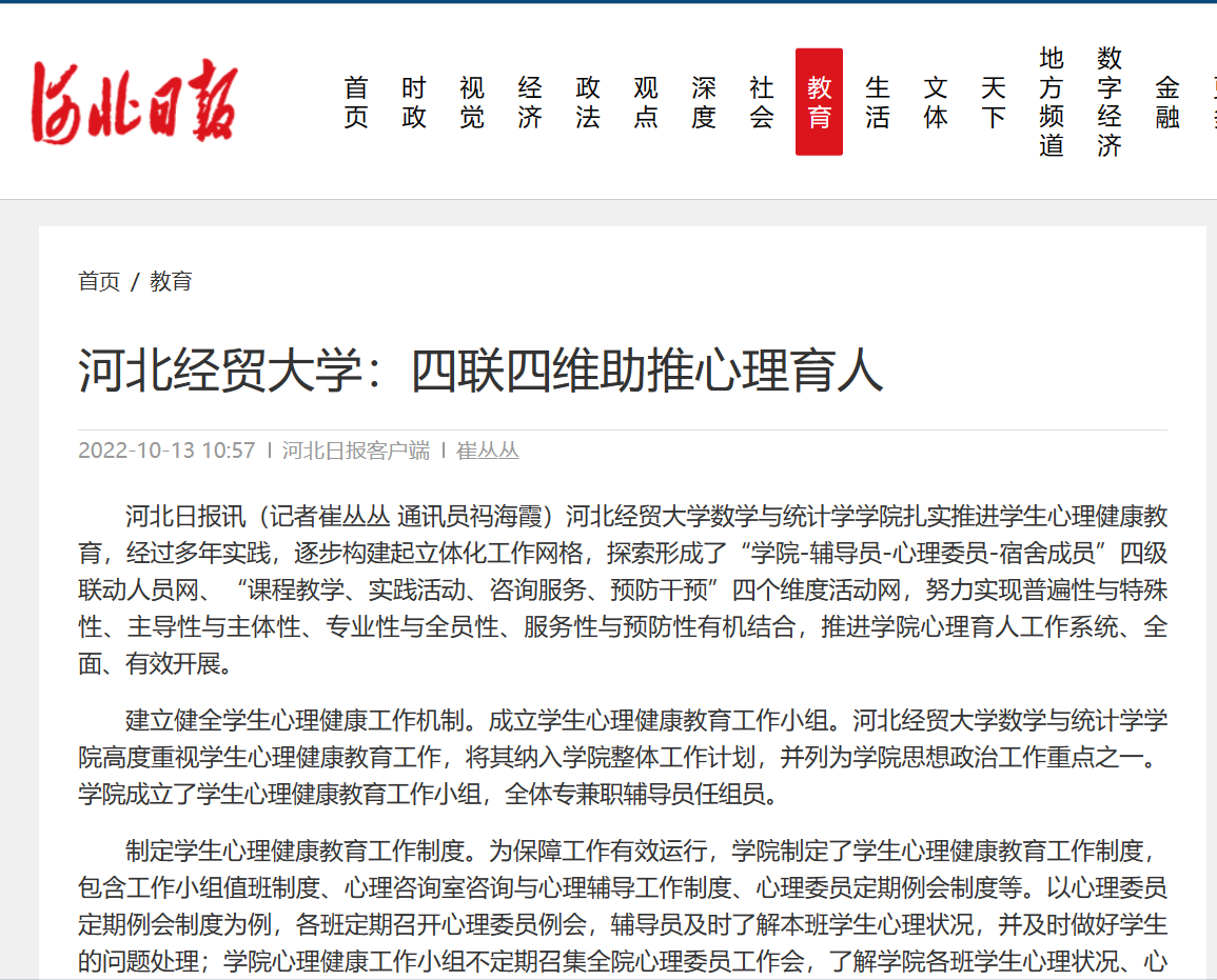 【河北日报客户端】tyc33455cc太阳成集团:四联四维助推心理育人