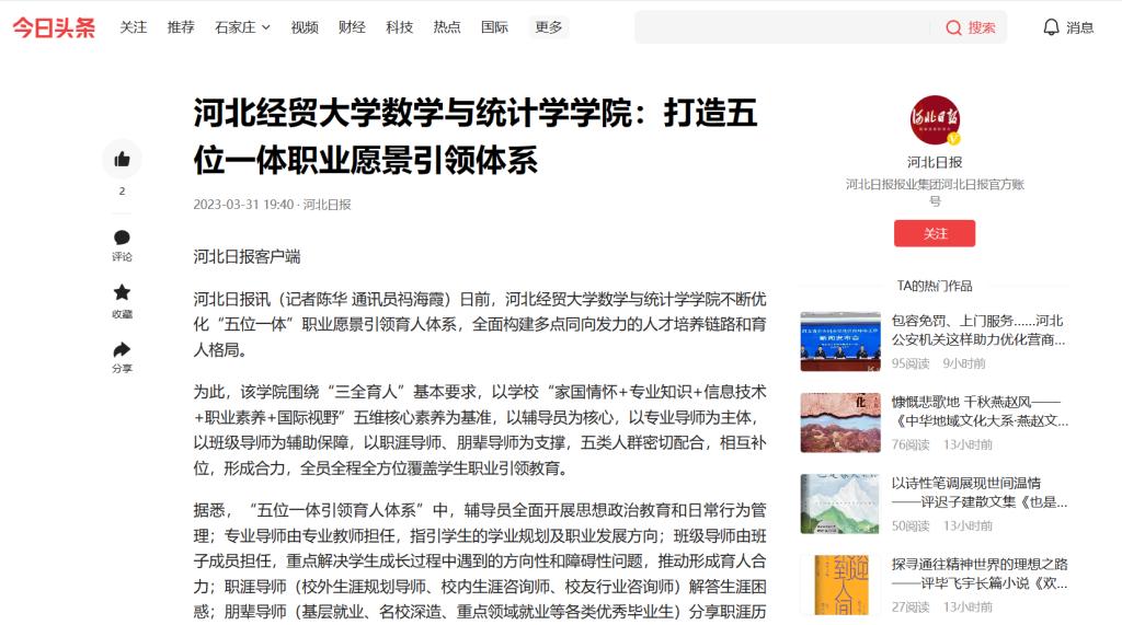 【今日头条】tyc33455cc太阳成集团数学与统计学学院:打造五位一体职业愿景引领体系