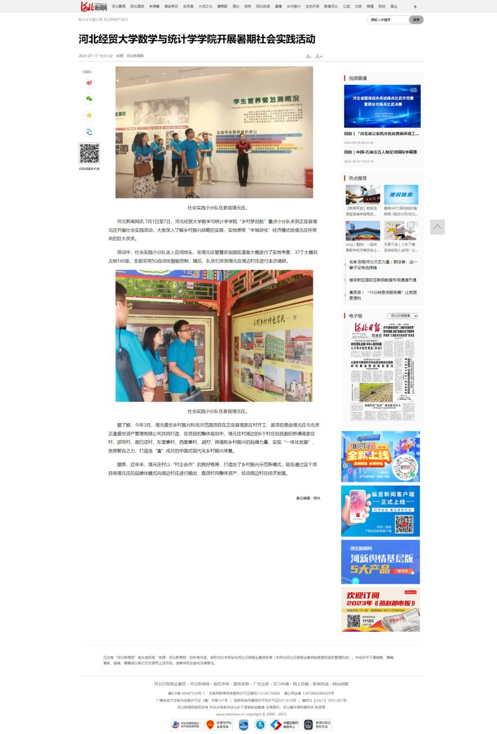 【河北新闻网】tyc33455cc太阳成集团数学与统计学学院开展暑期社会实践活动