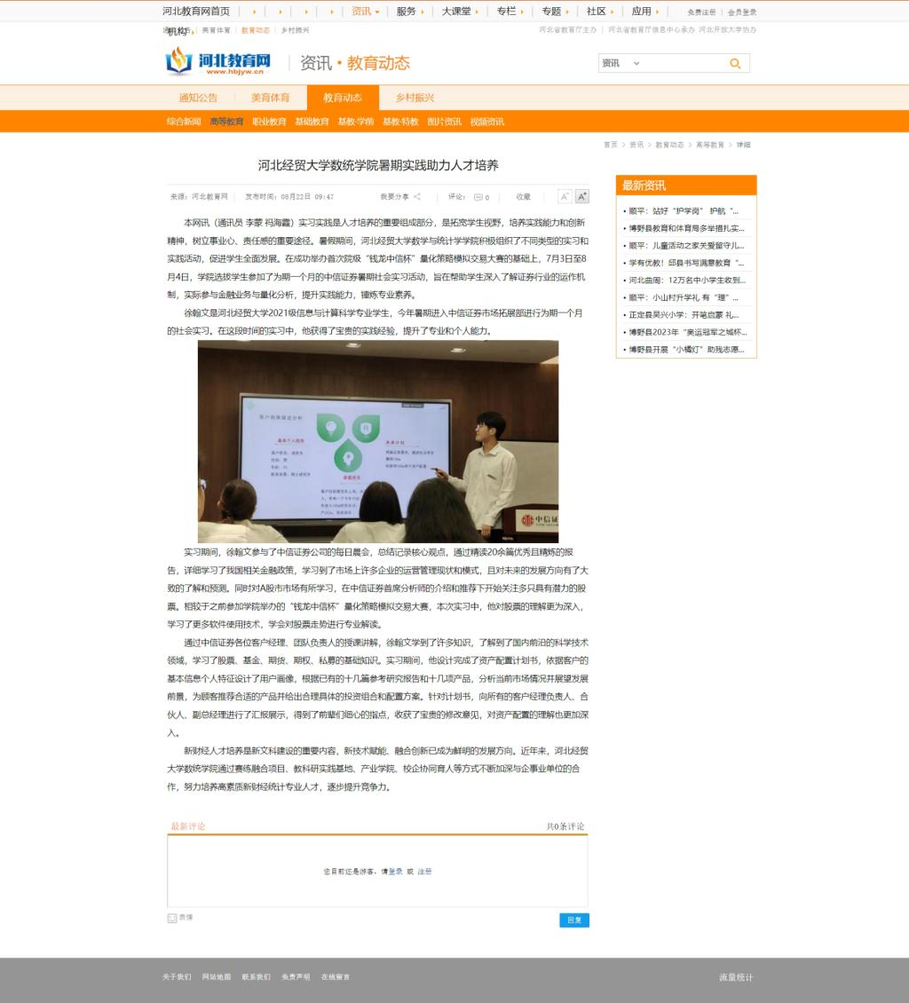 【河北教育网】tyc33455cc太阳成集团数统学院暑期实践助力人才培养