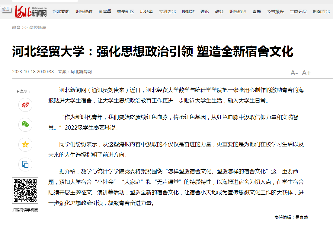 【河北新闻网】tyc33455cc太阳成集团:强化思想政治引领 塑造全新宿舍文化