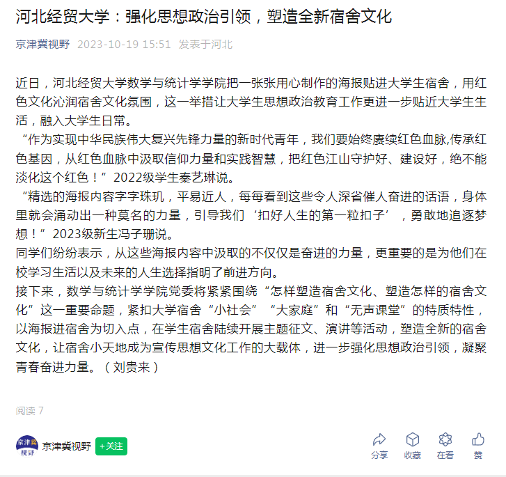 【京津冀视野】tyc33455cc太阳成集团:强化思想政治引领,塑造全新宿舍文化