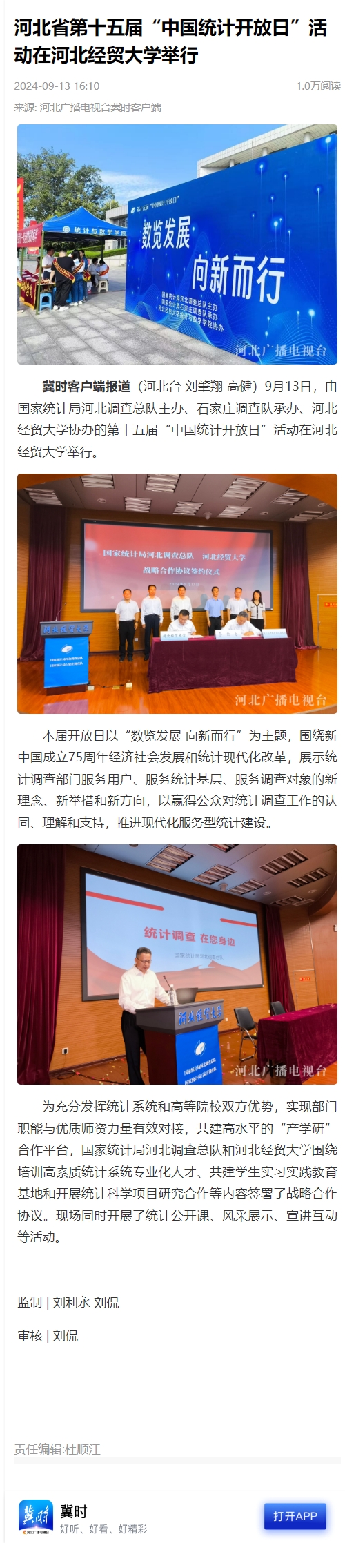 【河北广播电视台冀时客户端】河北省第十五届“中国统计开放日”活动在tyc33455cc太阳成集团举行