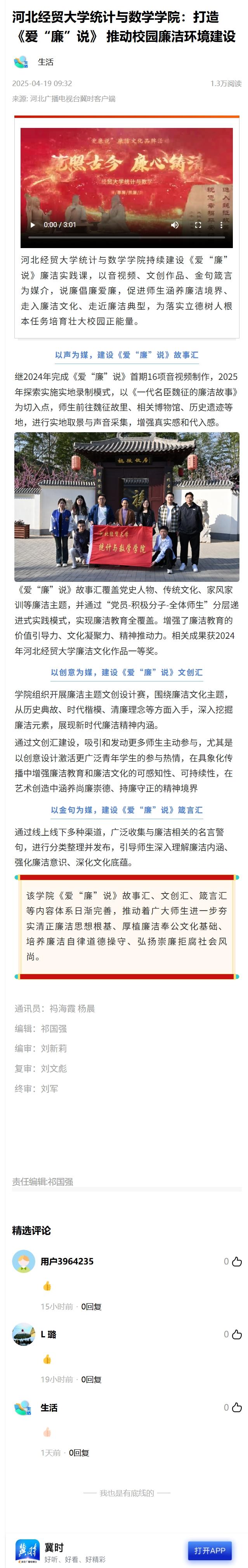 【河北广播电视台冀时客户端】太阳成集团tyc33455ccww:打造《爱“廉”说》 推动校园廉洁环境建设