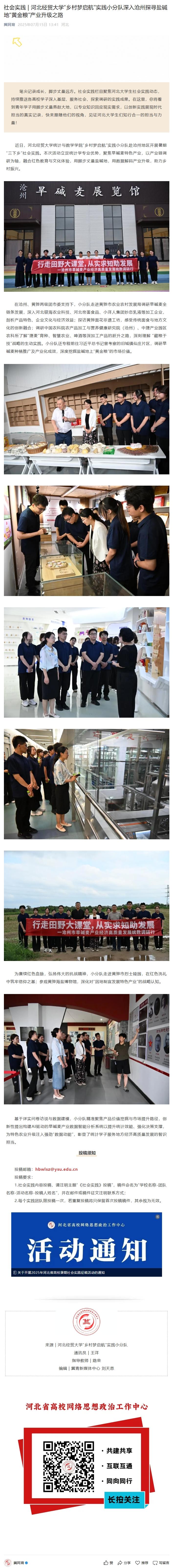 【冀网育】tyc33455cc太阳成集团“乡村梦启航”实践小分队深入沧州探寻盐碱地“黄金粮”产业升级之路