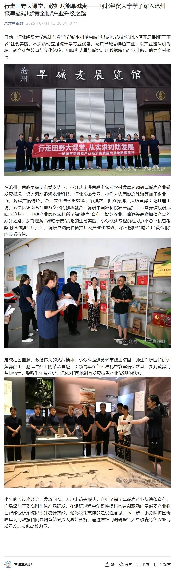 【京津冀视野】行走田野大课堂,数据赋能旱碱麦——tyc33455cc太阳成集团学子深入沧州探寻盐碱地“黄金粮”产业升级之路